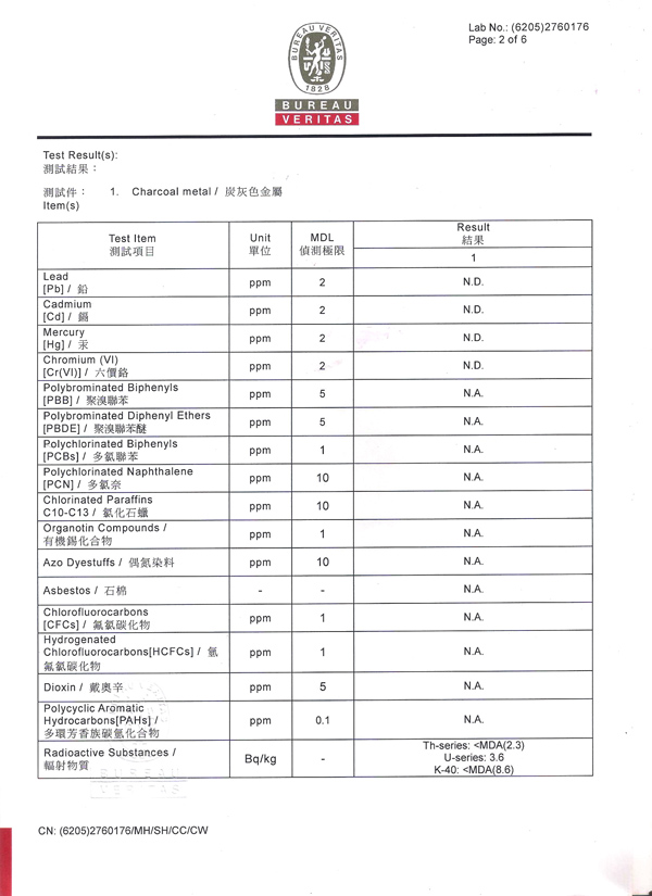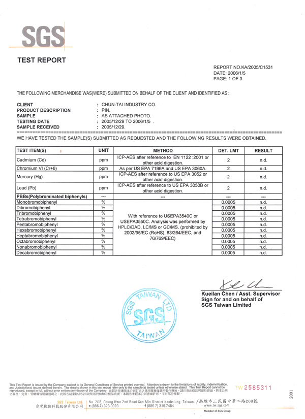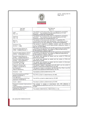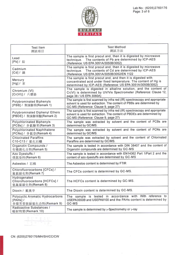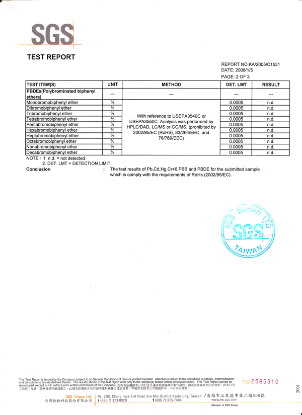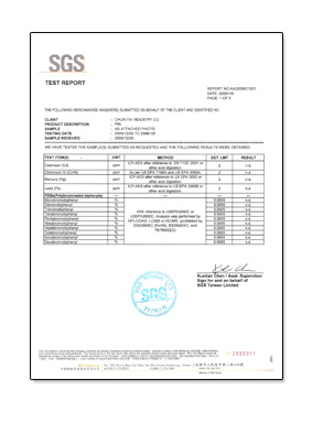 經法國必維國際檢驗集團(Bureau Veritas)及瑞士通用驗證(SGS)雙重嚴格測試下,合勝產品確定不含下列有害物質且符合RoHs (2002/95/EC)規範。 Lead free 鉛Cadmium free 鎘Mercury free 汞Chromium free 六價鉻PBBs free 多溴聯苯PBDEs free 多溴二苯醚
